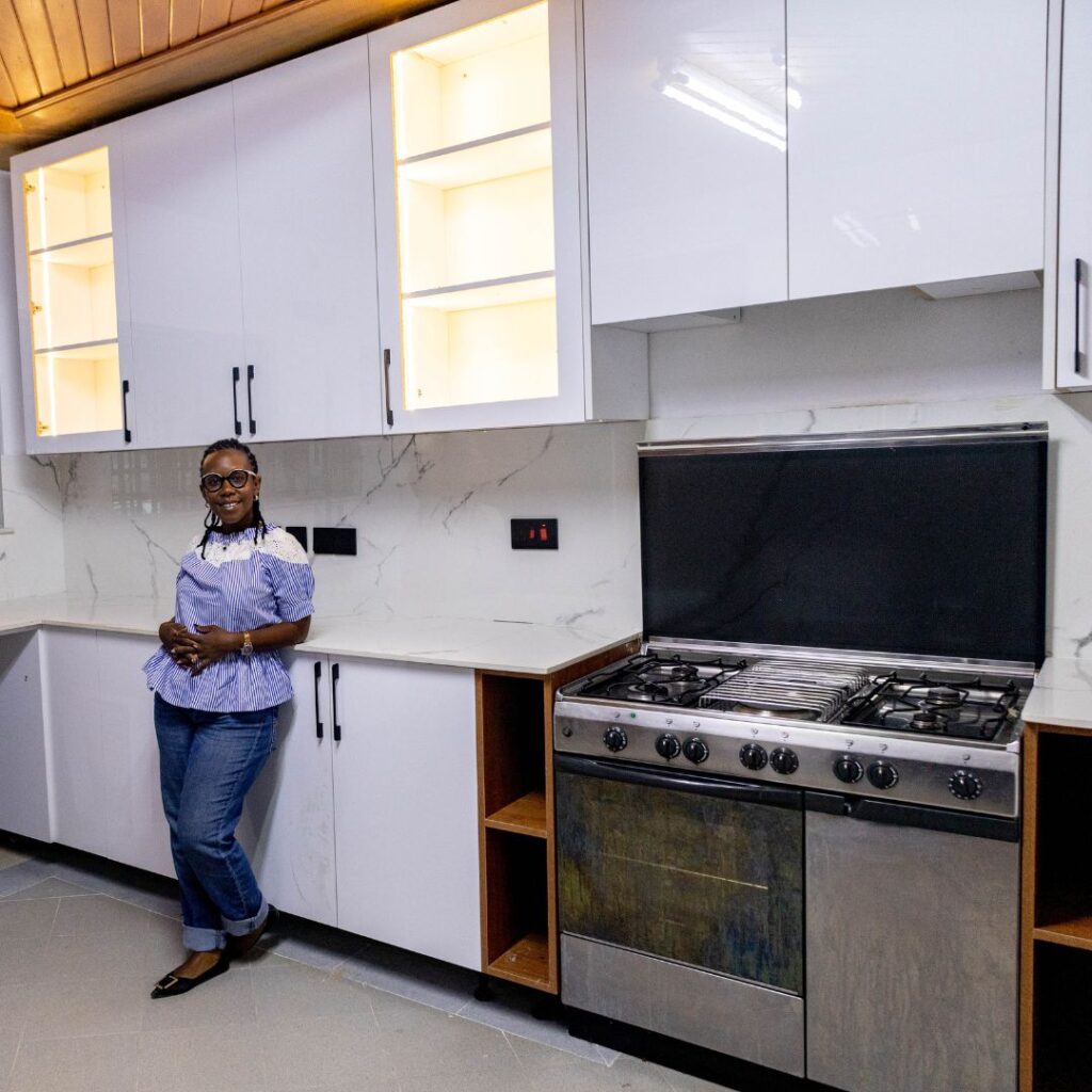 Wanja Githongo, lead architect at Guarcha Architects opening a cabinet in a kitchen she has designed.