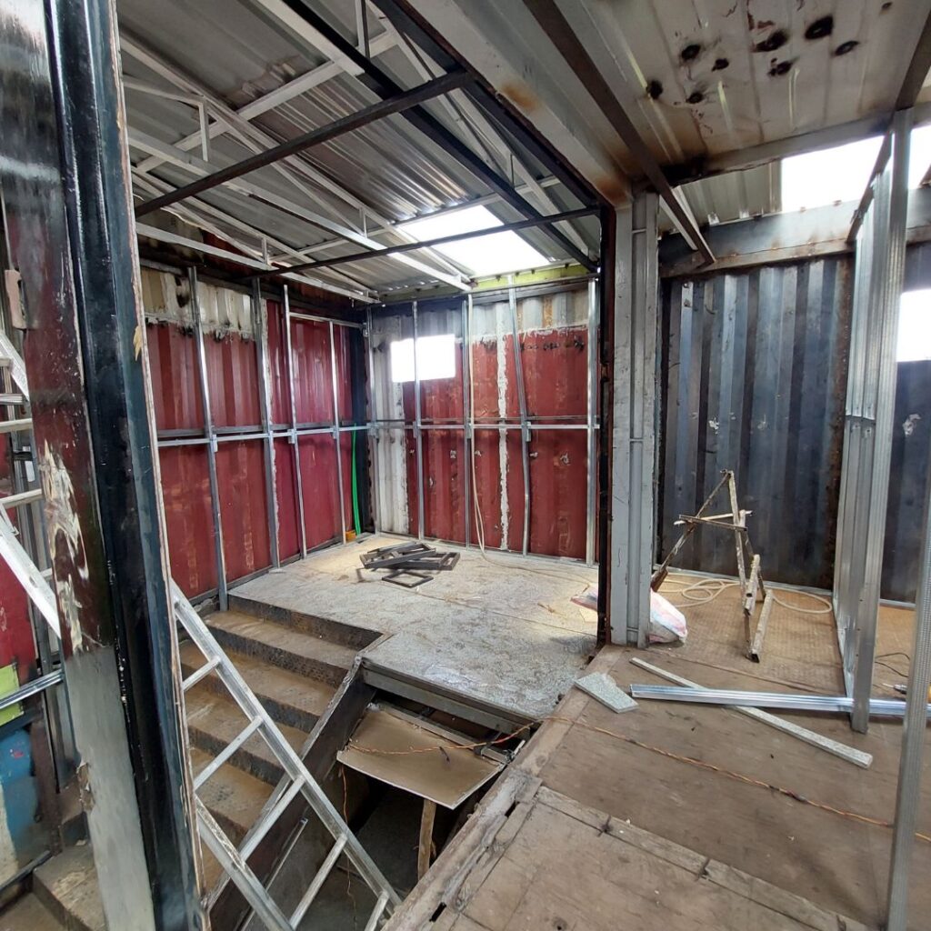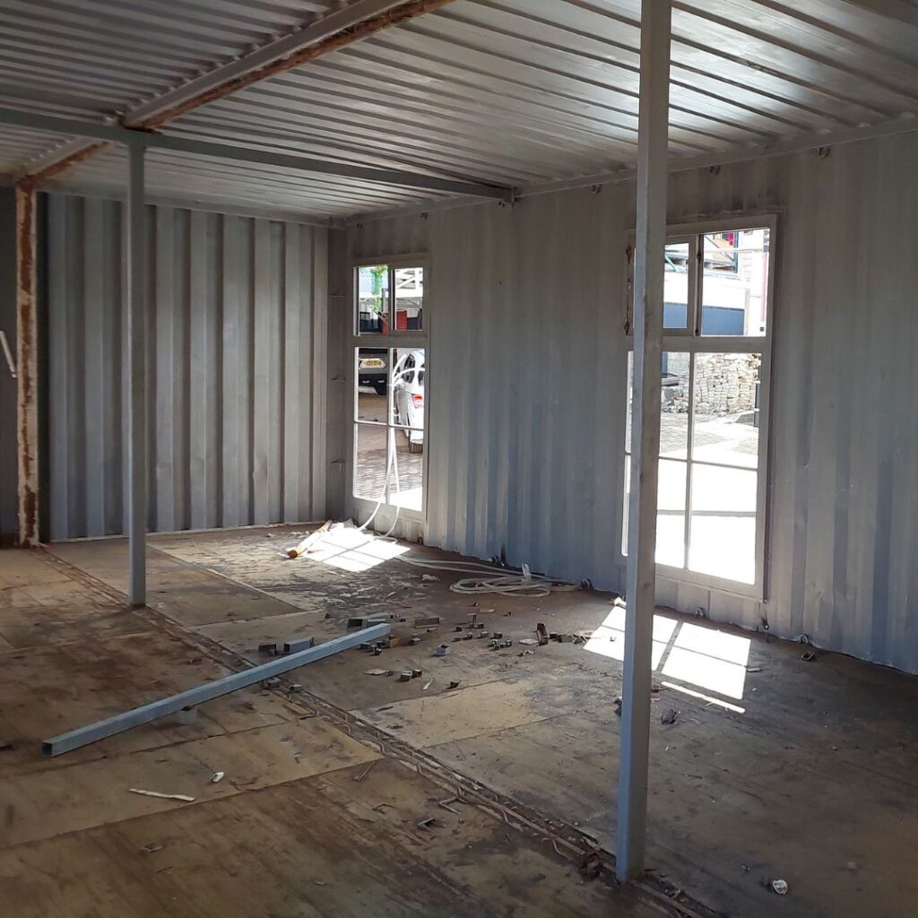 This is a 40 ft container project where we converted the container into a spa of two massage parlours, a ladies salon and men’s barber. Some of the special features of the conversion of space was use of steel sections, gypsum and glass elements to the space to maximize on the use of space.