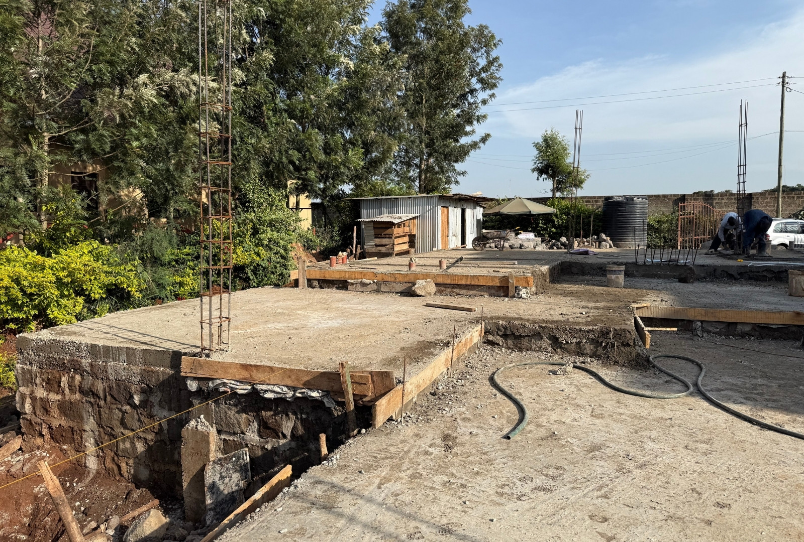 Judith Wanja (the lead architect at Guarcha Architects, a leading architecture firm in Nairobi) standing on a staircase in a house under construction