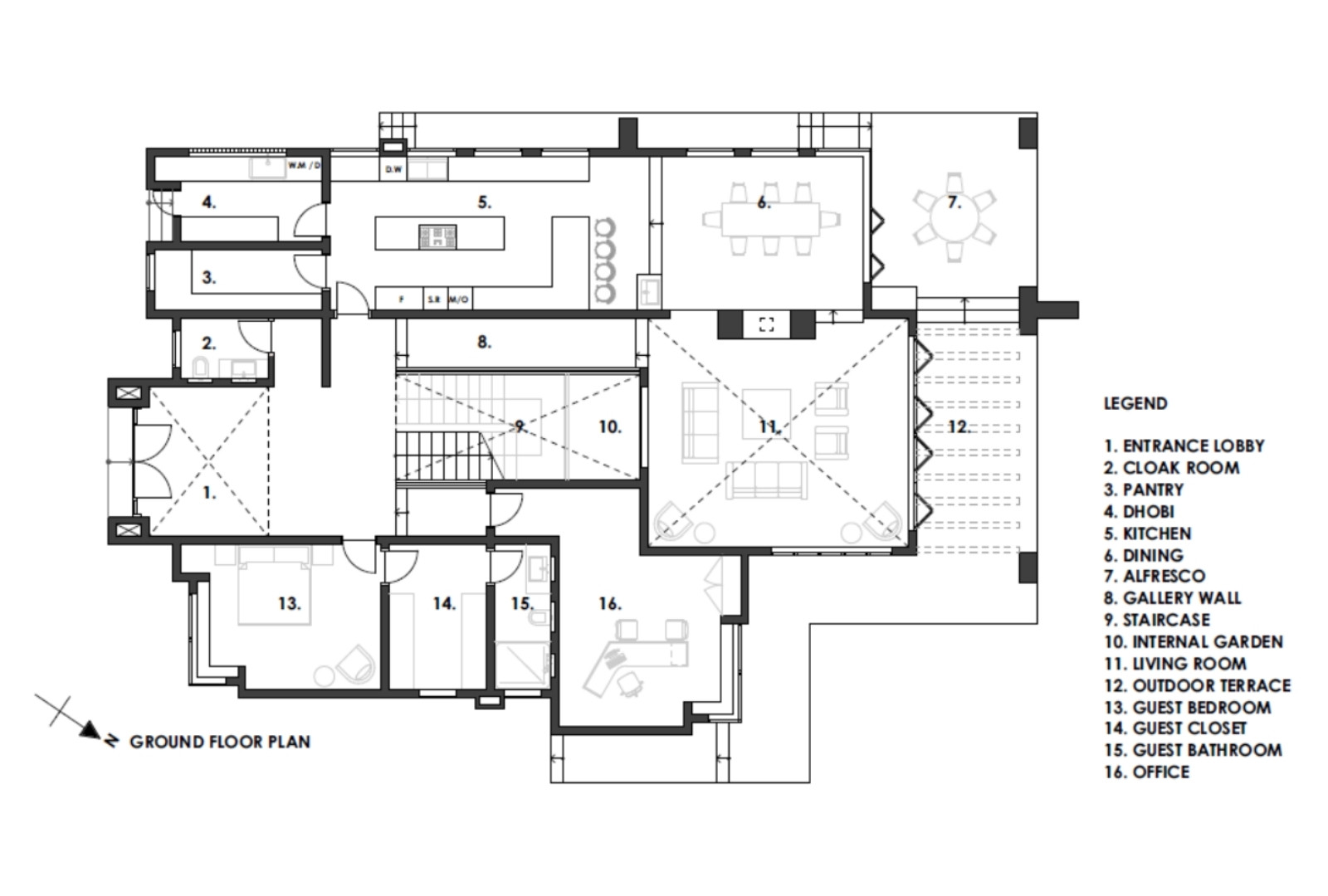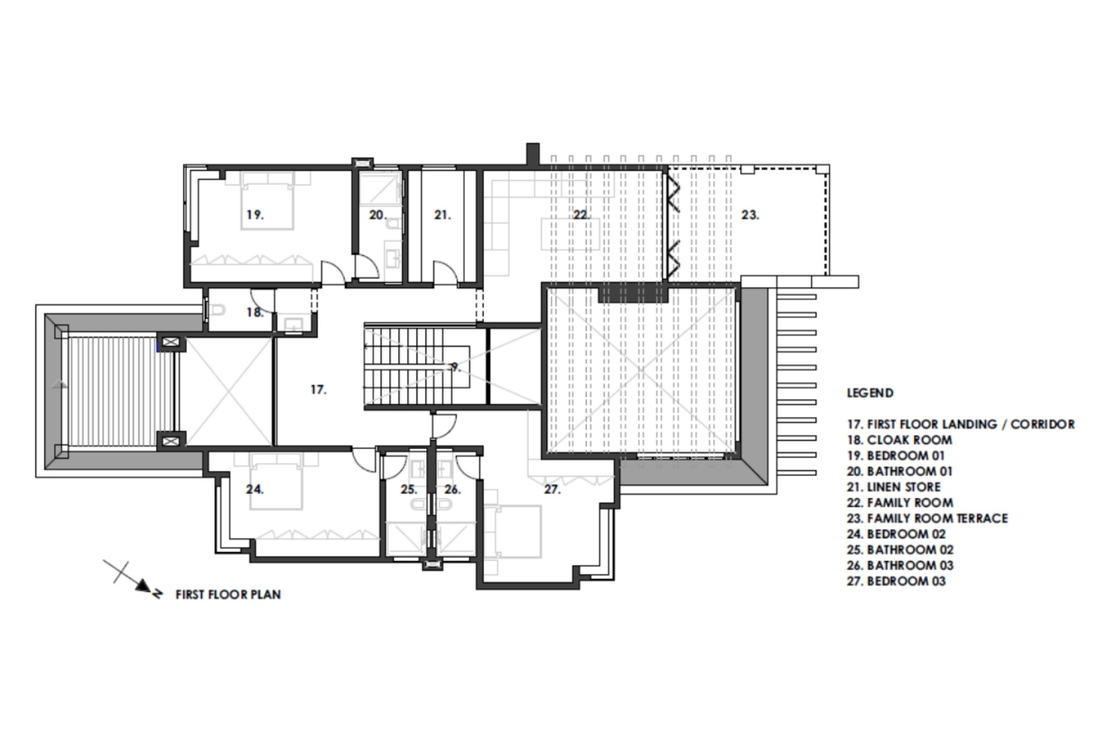 This is a 5 bedroom house located in Kerarapon, Ngong. The house is constructed on a gentle sloping site within a gated community. Some of the unique design features for the house are double volume spaces above the living room, entrance lobby and the internal garden near the staircase. The house also has a gallery walkway for the family to hang their family pictures. There is a double opening chimney that serves the dining and the living room. The family terrace overlooks the stunning nearby forest for great views. The house also has an office on ground level, a gym and utility room on the second floor. For the garden area at the back, there shall be a conversation pit with an open fireplace at the center.